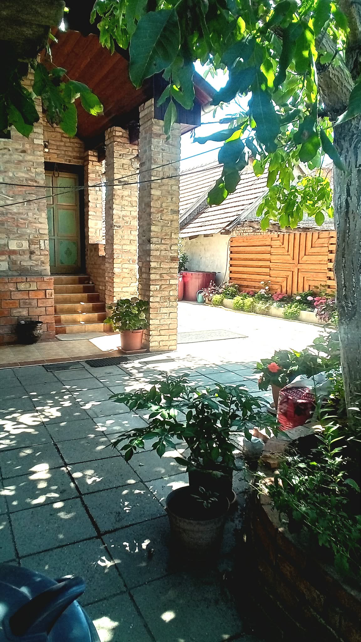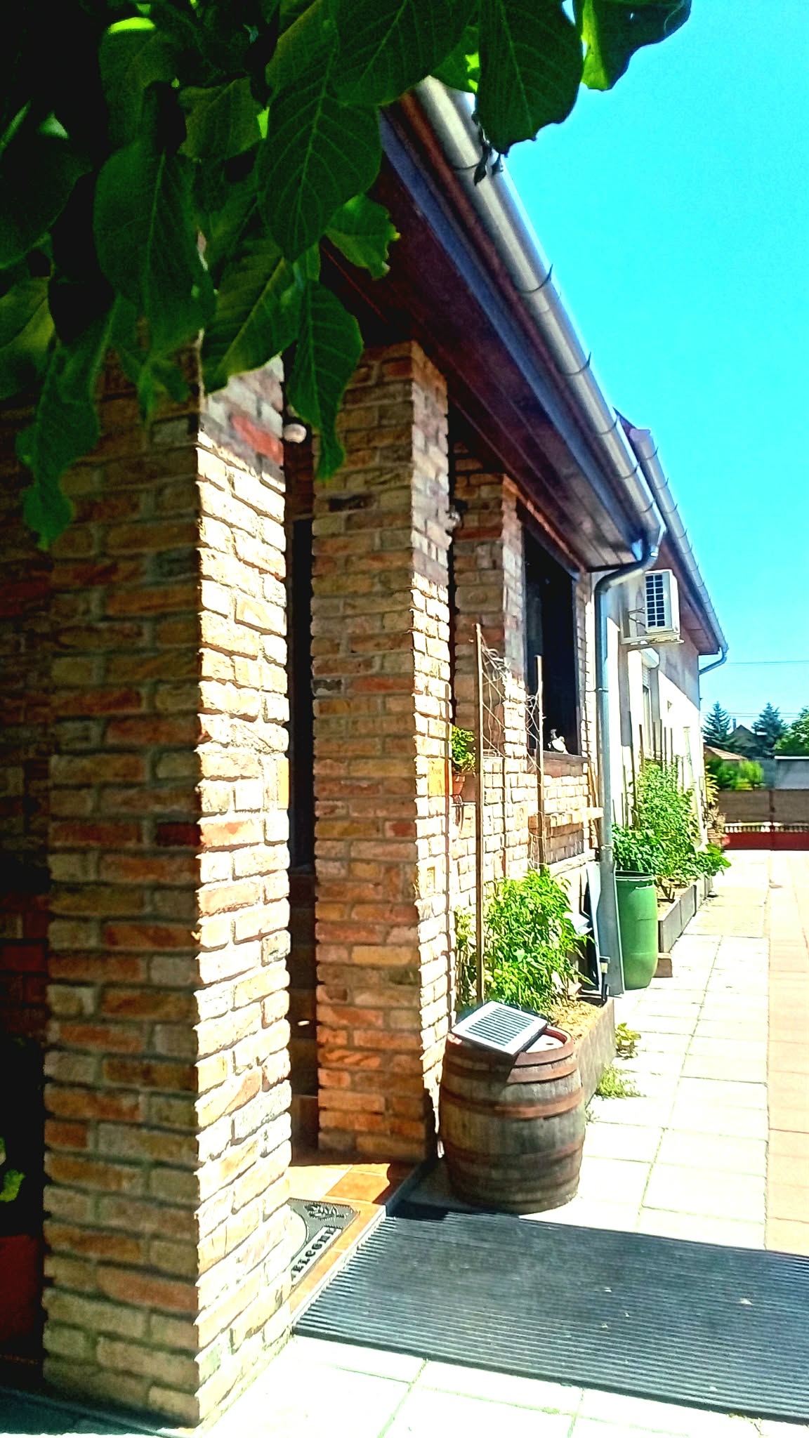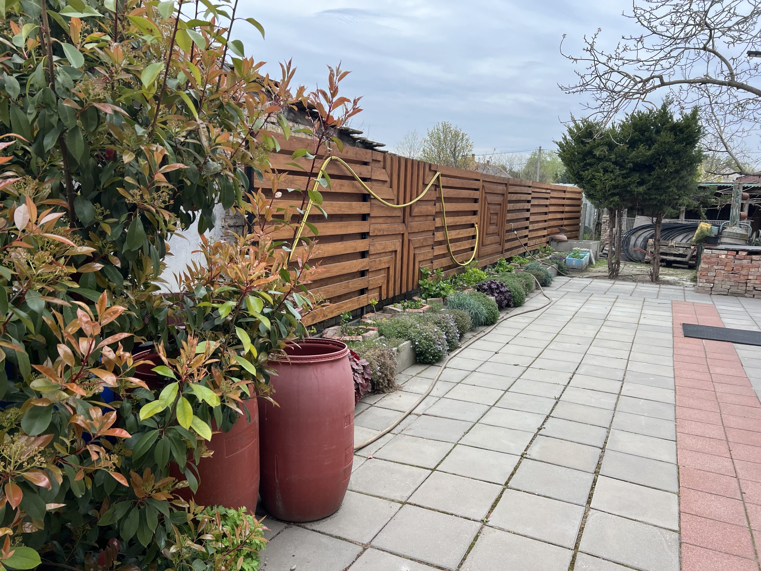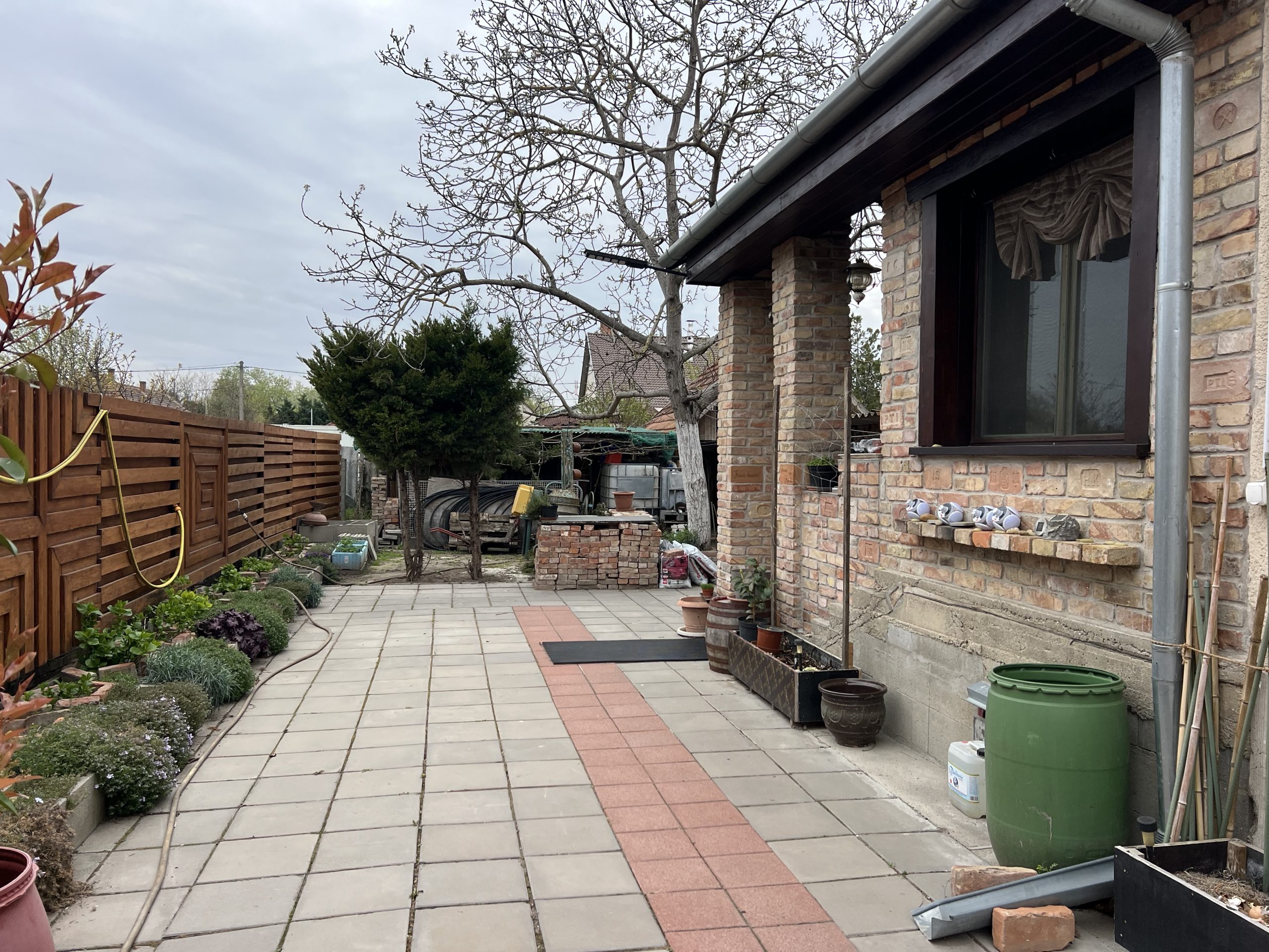 térkövezett udvar és ház előtti parkolási lehetőség