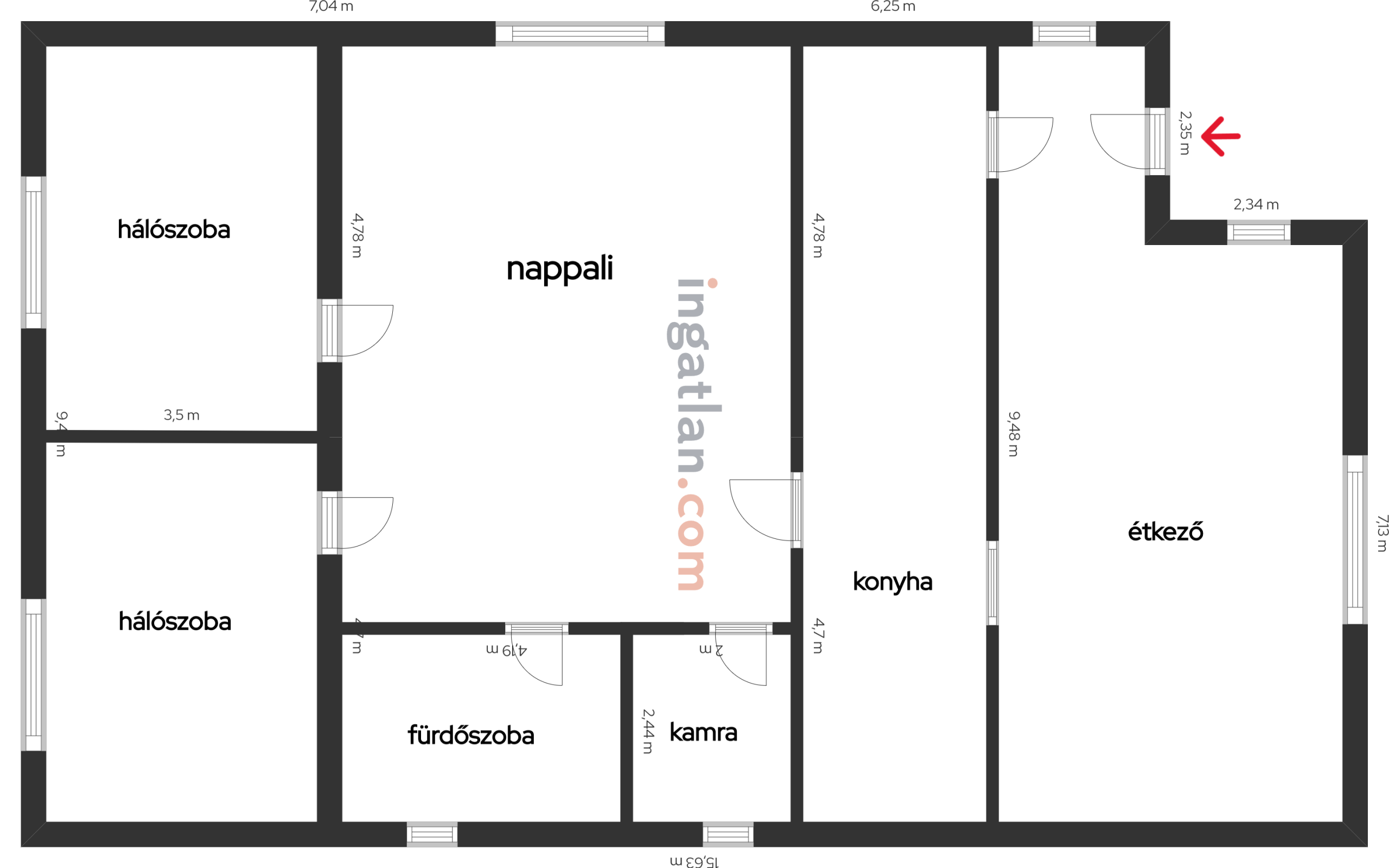 Az ingatlan helyiségei: